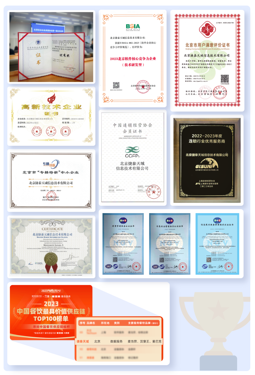 作为深耕位置智能15年的高新技术企业,捷泰天域近年来获得的技术类、行业类的不少奖项。每一项收获都离不开团队的持续创新和优秀工作,也感谢各行业用户的支持,感谢专业机构的认可。